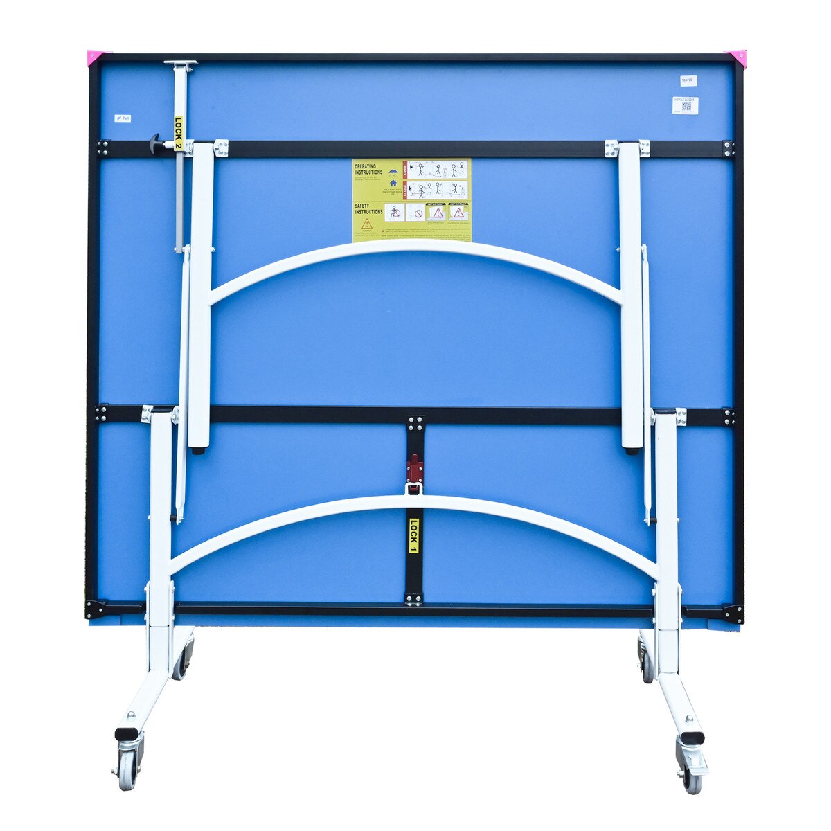 It comes with a regulation 6" net and bracket set that has padded clamps to protect the table surface. Quicken your reflexes by folding up one side of the table and using it as a backboard. When you are ready to stow, the table folds and rolls into storage with its rubber wheels. The wheels can be locked in place to help prevent the table from rolling during play or storage. A very narrow storage profile is all that is needed to stow the table. The halves of the tables can be stored tightly together, which is ideal for clubs with multiple tables and limited space.
