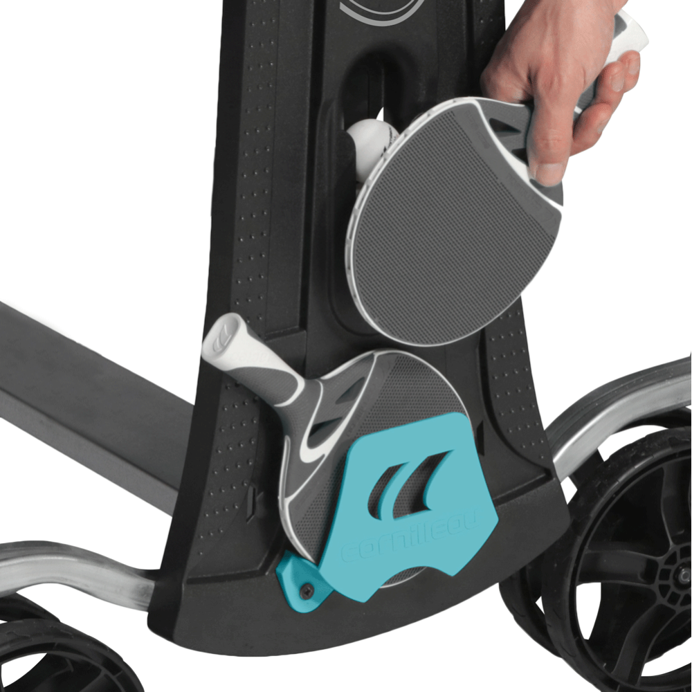 The 300X robust design invites you to play. It is a highly stable table that is easy to move. But these are not its only advantages. Its playing surface offers excellent rebound to delight players at all levels. The 300X table can adapt to slightly uneven terrain with its adjustable legs, while its central locking/release system and two brakes provide a high level of safety.