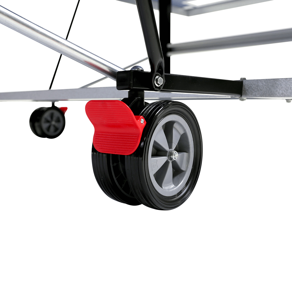 - Wheels: double with notched tread permanent cotton net system with tension and height adjustment.