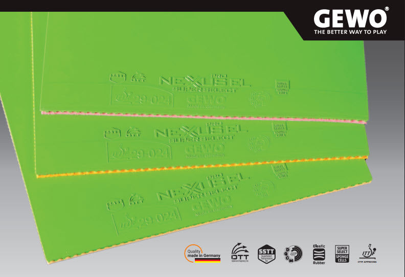 GEWO Nexxus SuperSelect - The Pro Player rubber meeting even the highest requirements. Due to the highly complex production process, these rubber were only available to the GEWO top contract players until now!