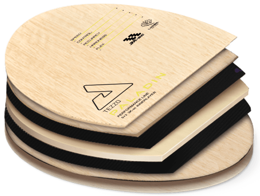 With a 5+2 ply composition and Limba top layers, the Tezzo Paladin pairs perfectly with firmer rubbers to create a soft yet springy effect. This design ensures greater comfort and consistency, making it a performance‑class blade that supports both developing and experienced players.