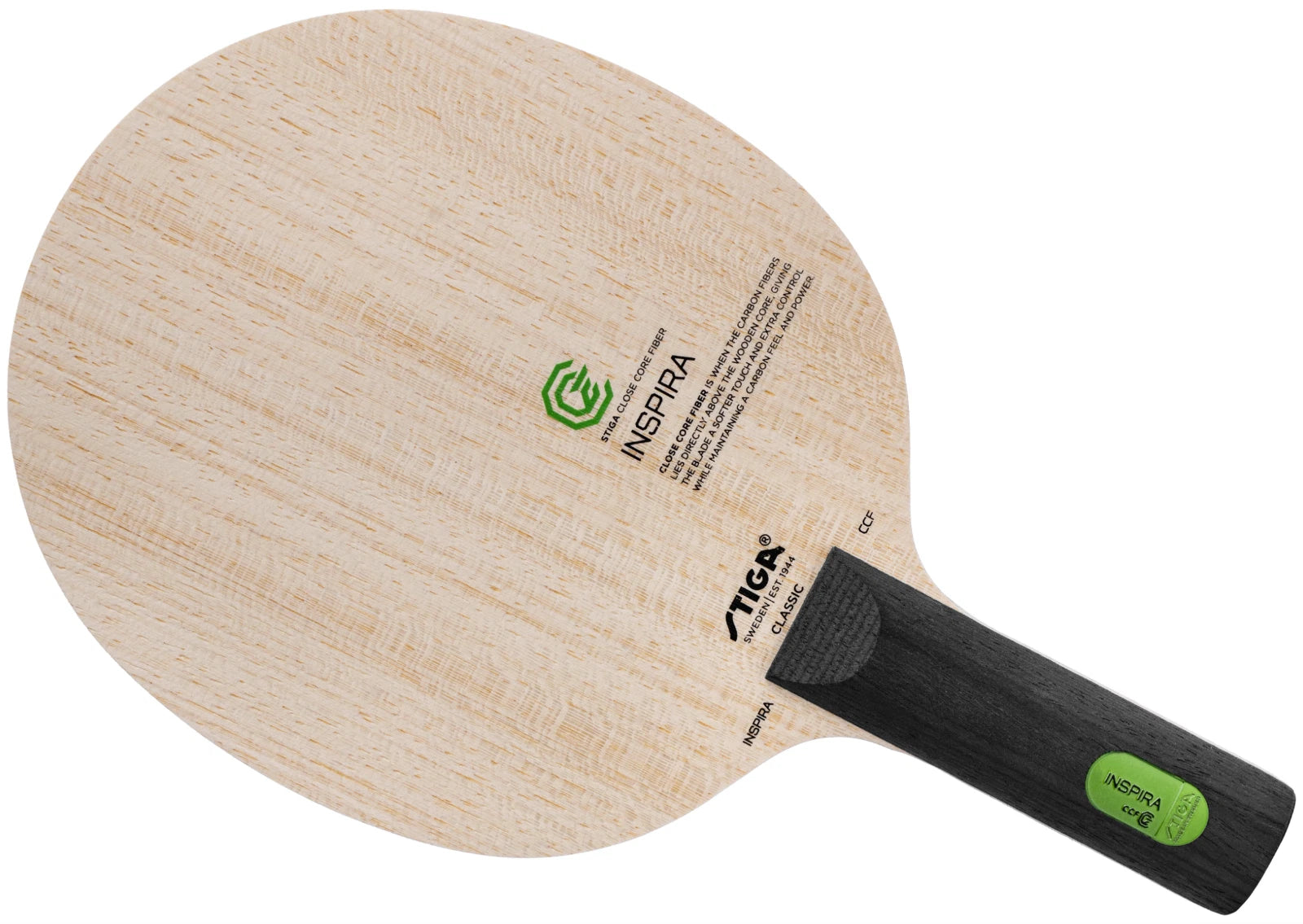 Stiga Inspira CCF is a carbon fiber blade that combines the speed and stability offered by carbon fiber with the superior control offered by wood. This offensive table tennis blade consists of 5 layers of wood and 2 layers of carbon fiber, commonly known as a 5+2-ply blade.
